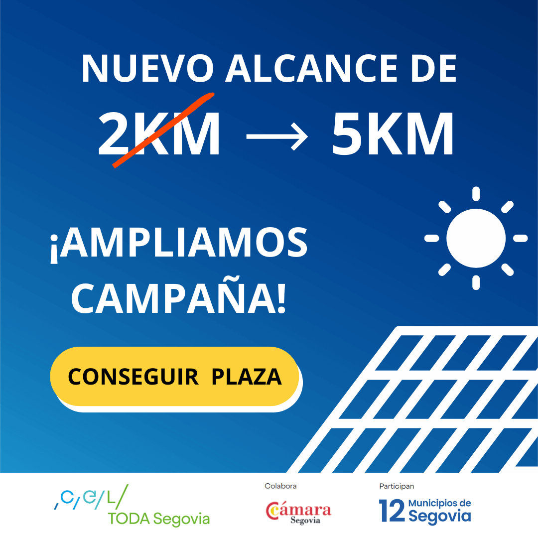 Se aumenta la distancia de las placas solares a 5 km. Si tu vivienda o negocio está dentro de este radio, puedes unirte a CEL TODA SEGOVIA y reducir tu factura de la luz…